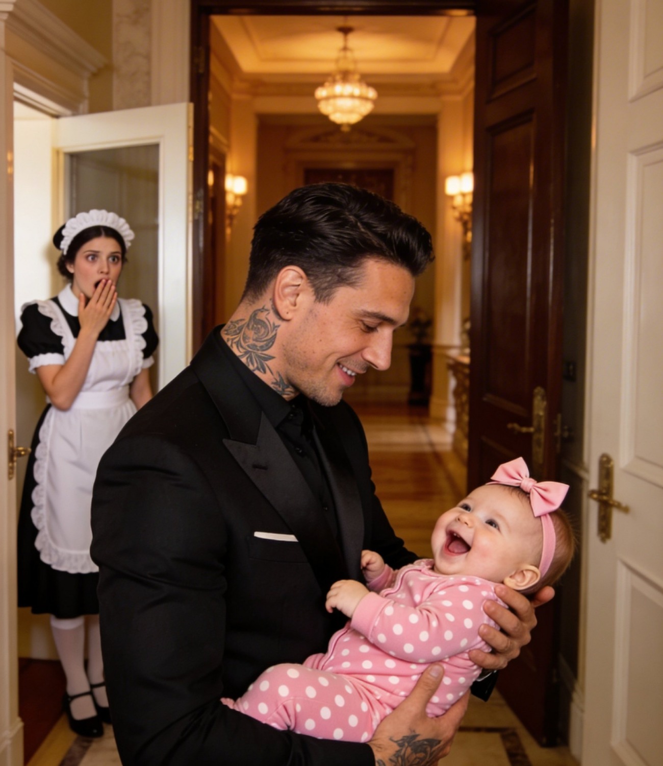 Serena se giró y vio a Lily en el marco de la puerta, frotándose los ojitos azules, aún adormilada. Llevaba su pijama de fleece favorita, enorme, y abrazaba un conejo de peluche maltratado llamado Barnaby.