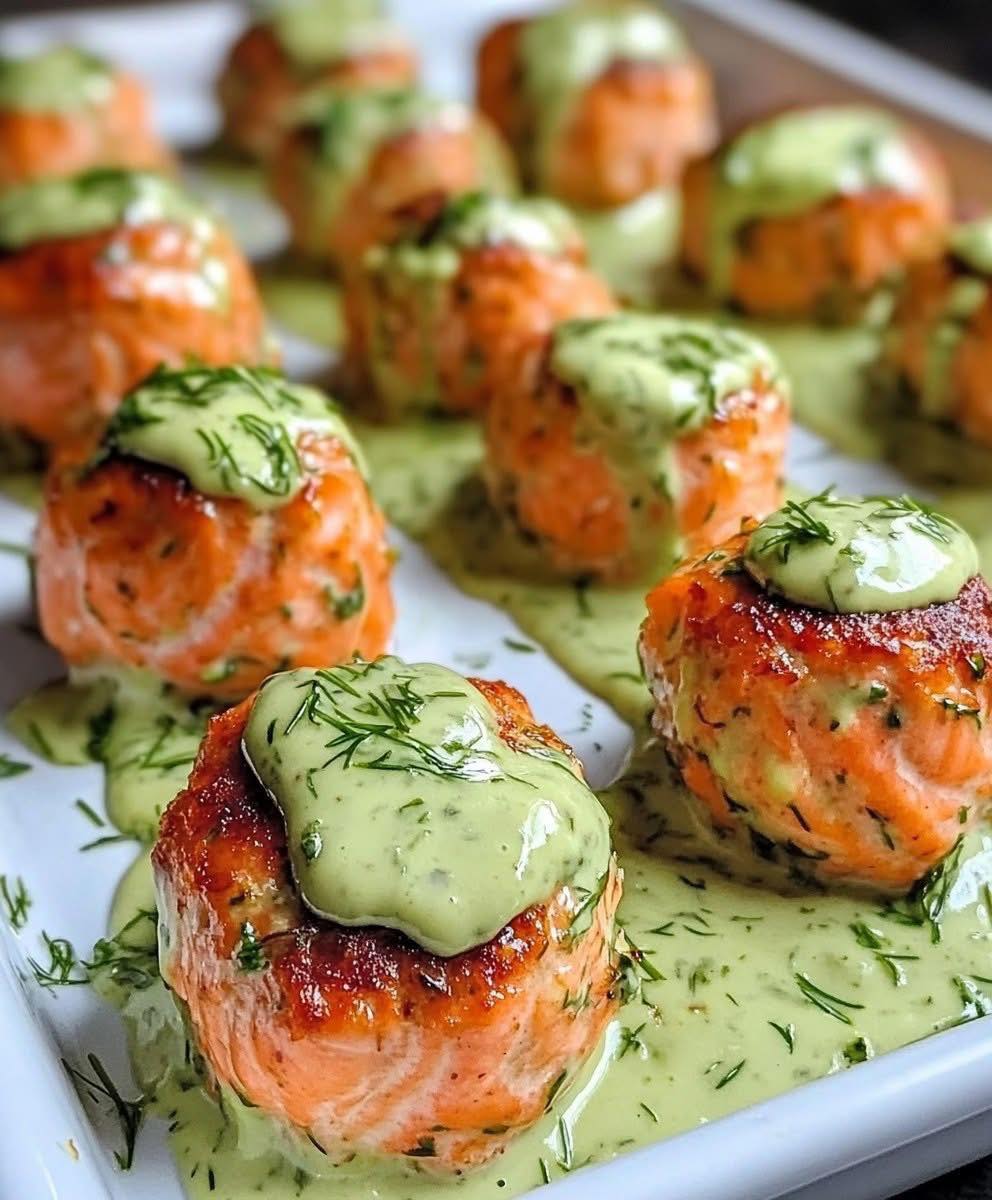 Baked Salmon Meatballs with Creamy Avocado Sauce 🧆🥑