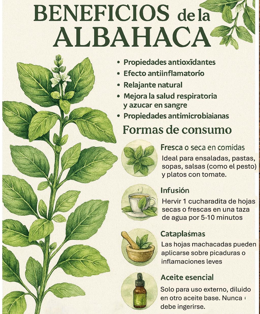La albahaca es una de las plantas más completas, tanto para la cocina como para el bienestar general. Aquí tienes los beneficios principales divididos por sus propiedades más potentes: