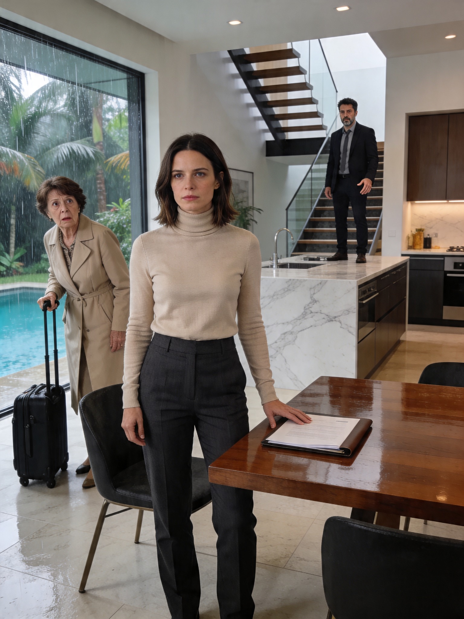 No bajé corriendo a recibirlos, sino que terminé mi café mientras el sonido de la lluvia golpeaba las ventanas con vista al jardín y la piscina. Cuando finalmente entré en la cocina, Beulah ya estaba junto a la isla con un impecable abrigo de lana y una taza de té en las manos.
