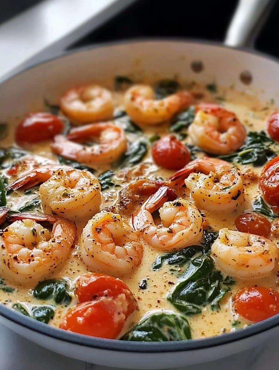 Rich, garlicky, and incredibly creamy, this one-skillet Creamy Tuscan Shrimp brings restaurant-quality flavors straight to your table in under 30 minutes. Juicy shrimp mingle with blistered tomatoes, tender spinach, and a velvety Parmesan cream sauce, creating a dish that’s both indulgent and fresh. Perfect for weeknight dinners or impressing guests, every bite bursts with flavor, color, and comfort, while keeping prep and cleanup minimal.