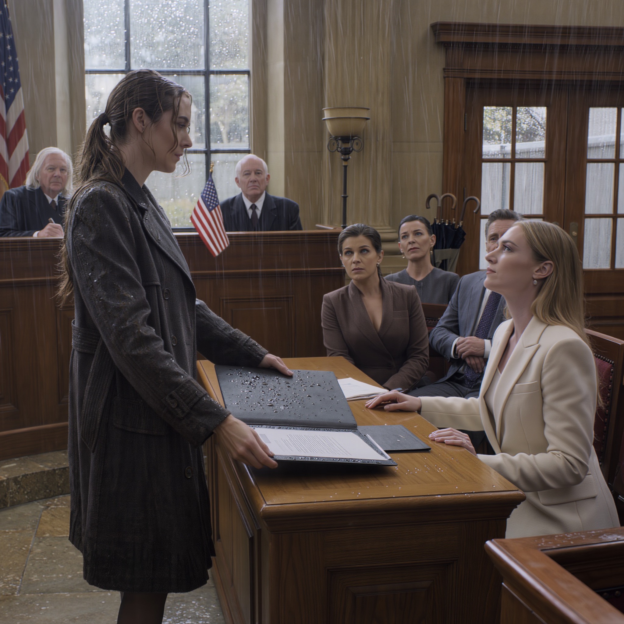 El juez levantó una mano. Luego volvió a mirar mi carpeta mojada, la forma en que la había sujetado bajo la lluvia, y entrecerró los ojos como si comprendiera perfectamente por qué había entrado empapada.