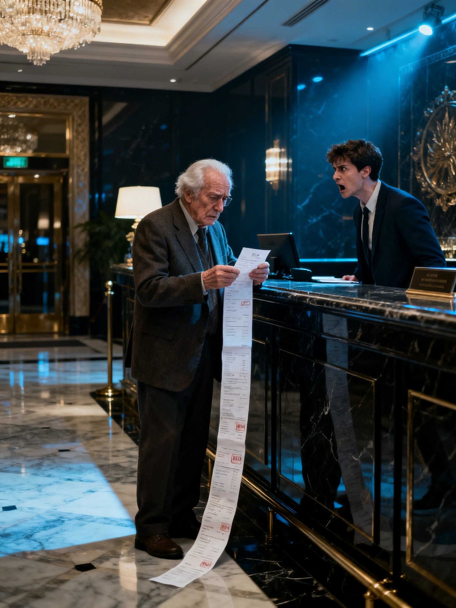 Mi abuelo estaba solo en la recepción, con una factura gruesa entre las manos y una expresión de desconcierto. Pregunté por el resto de la familia y el recepcionista me explicó que habían salido hacía más de una hora.