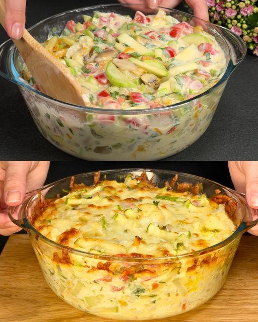 Fried Cauliflower and Vegetables with Sour Cream and Cheese