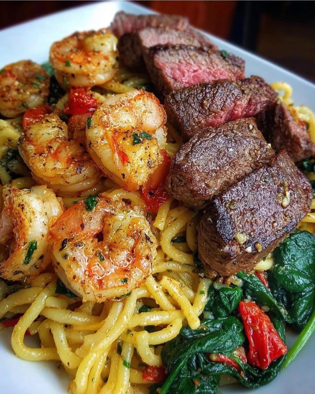🥩🍤 Garlic Butter Steak & Shrimp Pasta