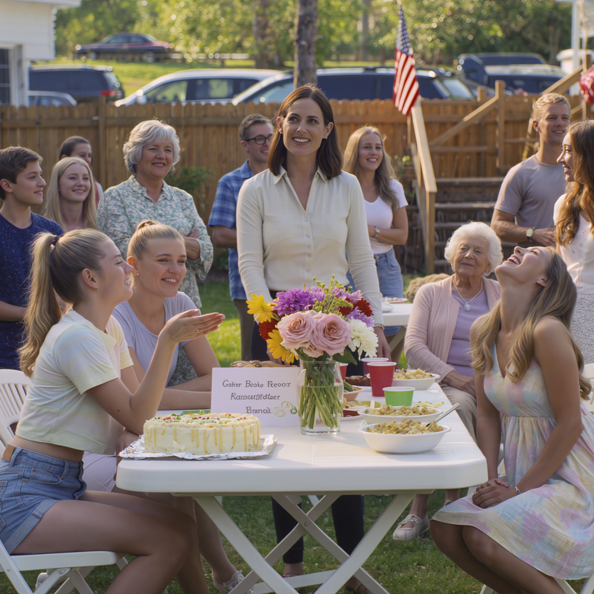 Mi hermana Danielle estaba cerca de la mesa de bebidas, riéndose a carcajadas de algo en su teléfono. Su hija mayor, Kaye, de diecisiete años y siempre conectada, iba de un grupo a otro, buscando llamar la atención como si fuera dinero.