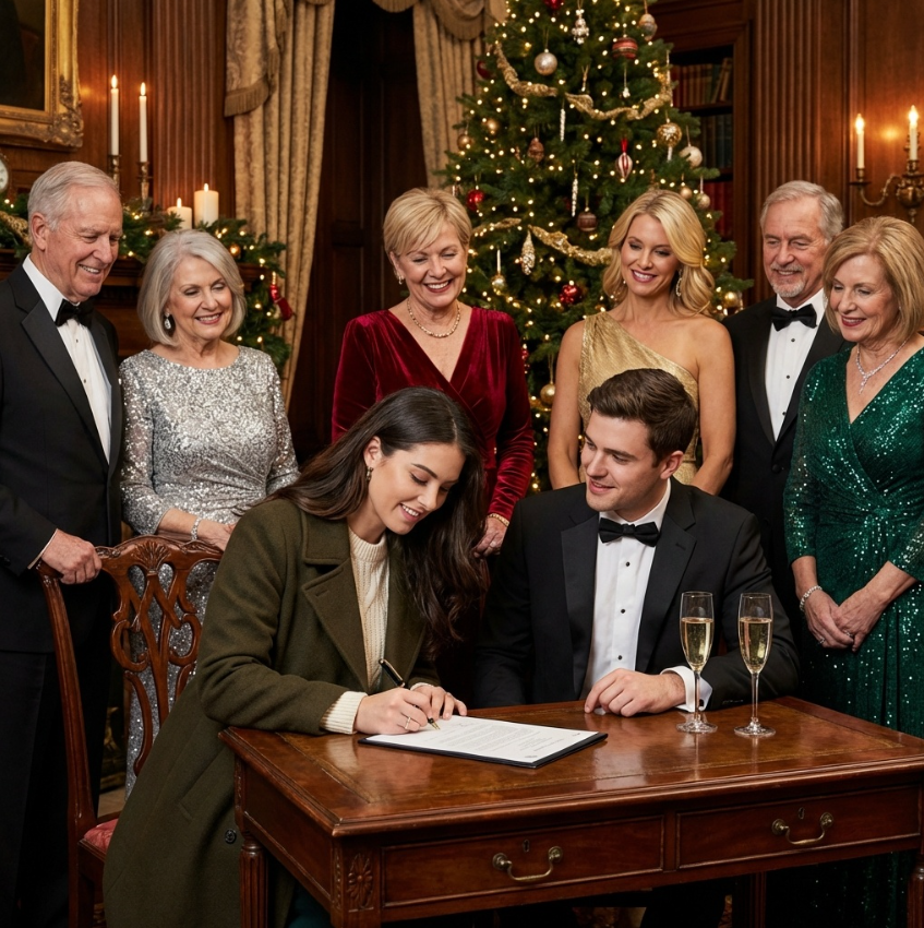 Era Nochebuena, pero para Sofía Martínez, el aire no olía a pino, a canela ni a la calidez de un hogar. Olía a perfume caro, a champán francés y a la fría ceniza de un final inminente. Sofía, con veintiocho años y un corazón que parecía haberse convertido en cristal agrietado, sostenía un bolígrafo Montblanc entre sus dedos temblorosos. Frente a ella, sobre la inmaculada mesa de caoba de la mansión Velasco, descansaban los papeles del divorcio. Eran papeles fríos, legales, definitivos. Cada página que pasaba era como arrancar un capítulo de su propia vida, tirándolo a la basura ante la mirada expectante de quienes juraron ser su familia.