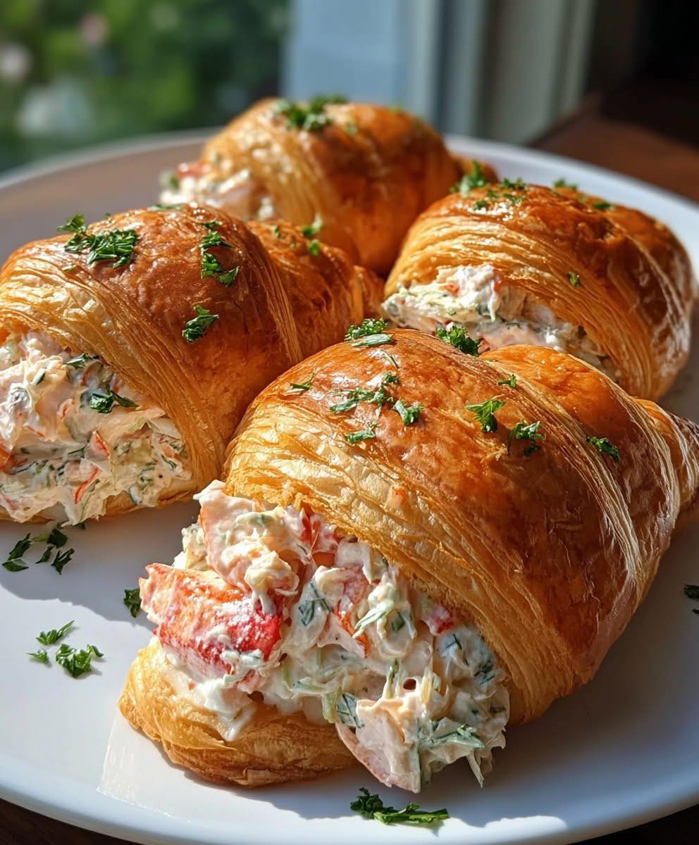 Imagine buttery, flaky croissants stuffed with sweet, tender lobster salad—a bite that’s delicate, creamy, and utterly luxurious. These Lobster Salad Croissant Rolls are perfect for brunch, a seaside-inspired lunch, or elegant party appetizers. The combination of rich lobster meat, zesty lemon, and fresh herbs balances beautifully with the soft croissant, delivering a light yet indulgent meal. They’re quick to assemble, impressive on the plate, and guaranteed to delight anyone who tries them.