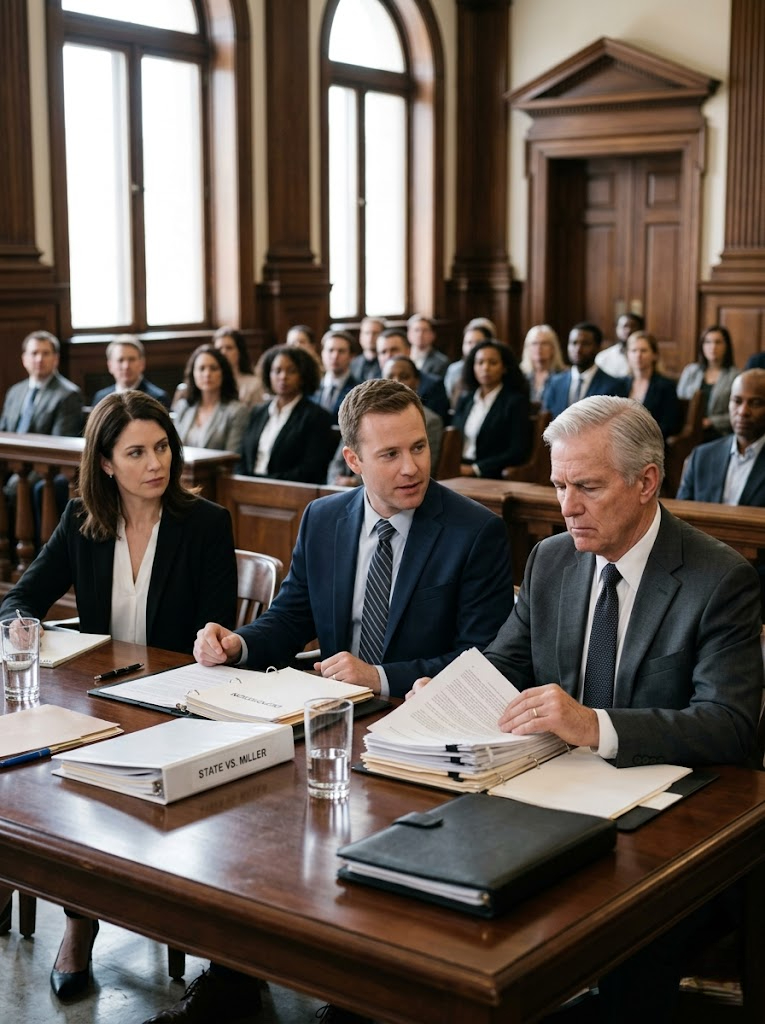 Llegó a la mesa de la defensa, dejó su maletín con un golpe sordo y deliberado, y se volvió primero no hacia mí, ni hacia el juez, sino hacia Keith.