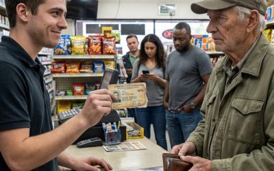 El cajero, un joven llamado Kaden, resopló cuando vio la tarjeta de identificación. —Señor, esta identificación es de los años…