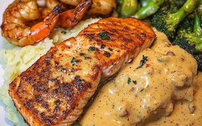 Cajun Salmon with Garlic Mash & Shrimp Veggie Medley 🐟🥦🦐 Introduction This dish is a vibrant, flavor-packed dinner that balances…