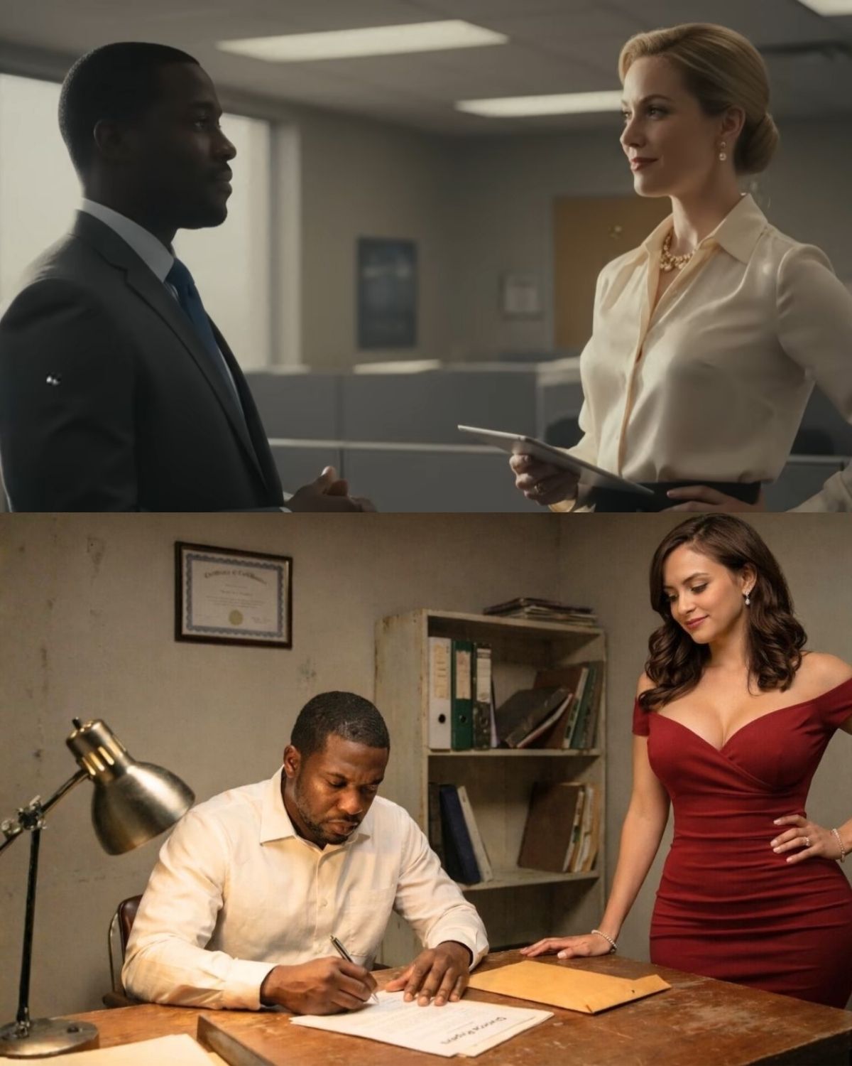 Su vestido carmesí de Armani se ajustaba a su figura a la perfección. Sus uñas, recién hechas esa mañana en el SoHo, golpeaban el escritorio con un ritmo que sugería impaciencia disfrazada de aplomo.