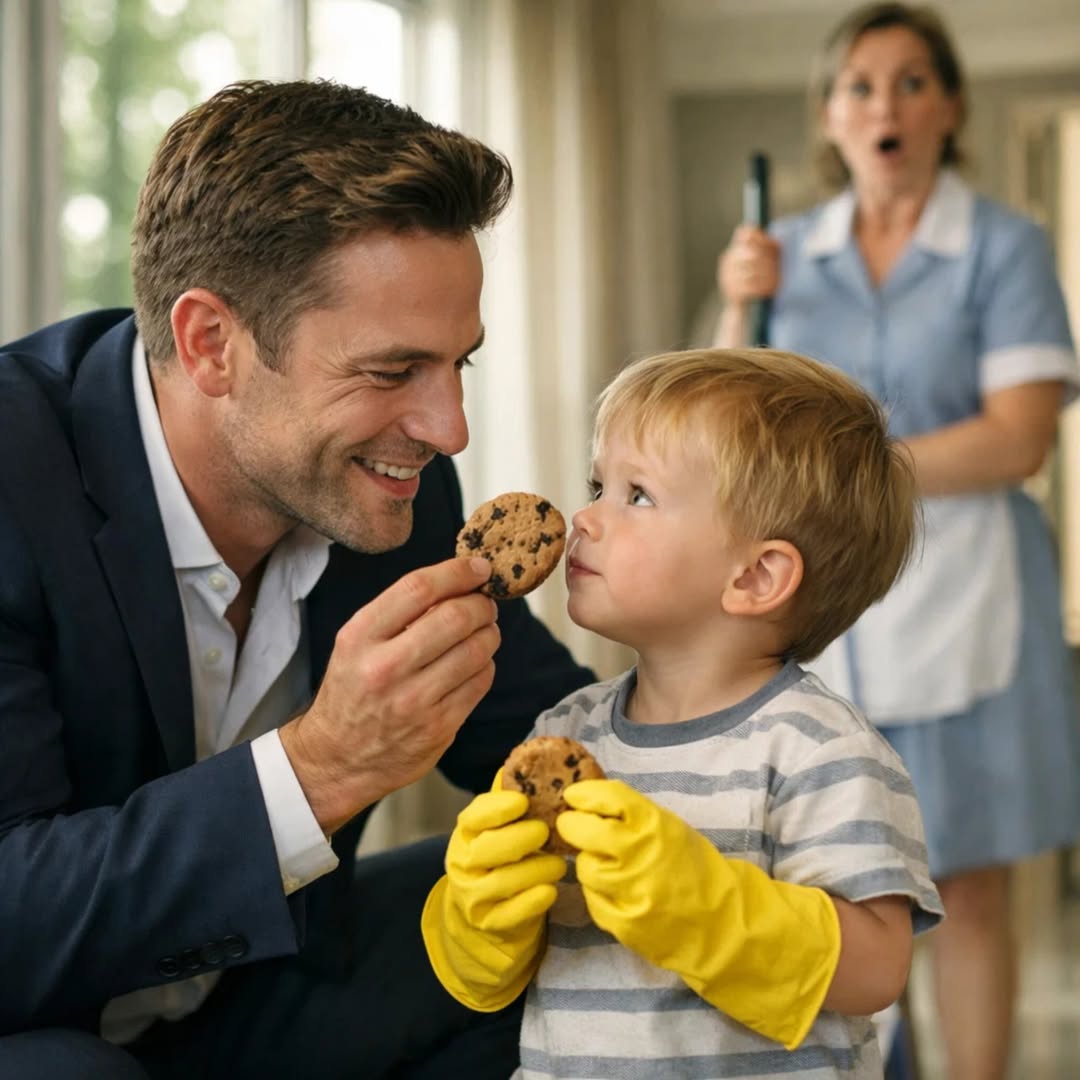 TODOS TENÍAN MIEDO DE MIRAR AL MILLONARIO A LOS OJOS… HASTA QUE LA HIJA PEQUEÑA DEL CONSERJE ENTRÓ EN SU OFICINA CON UNA GALLETA Y UN SECRETO QUE LO DEJÓ CONMOCIONADO.