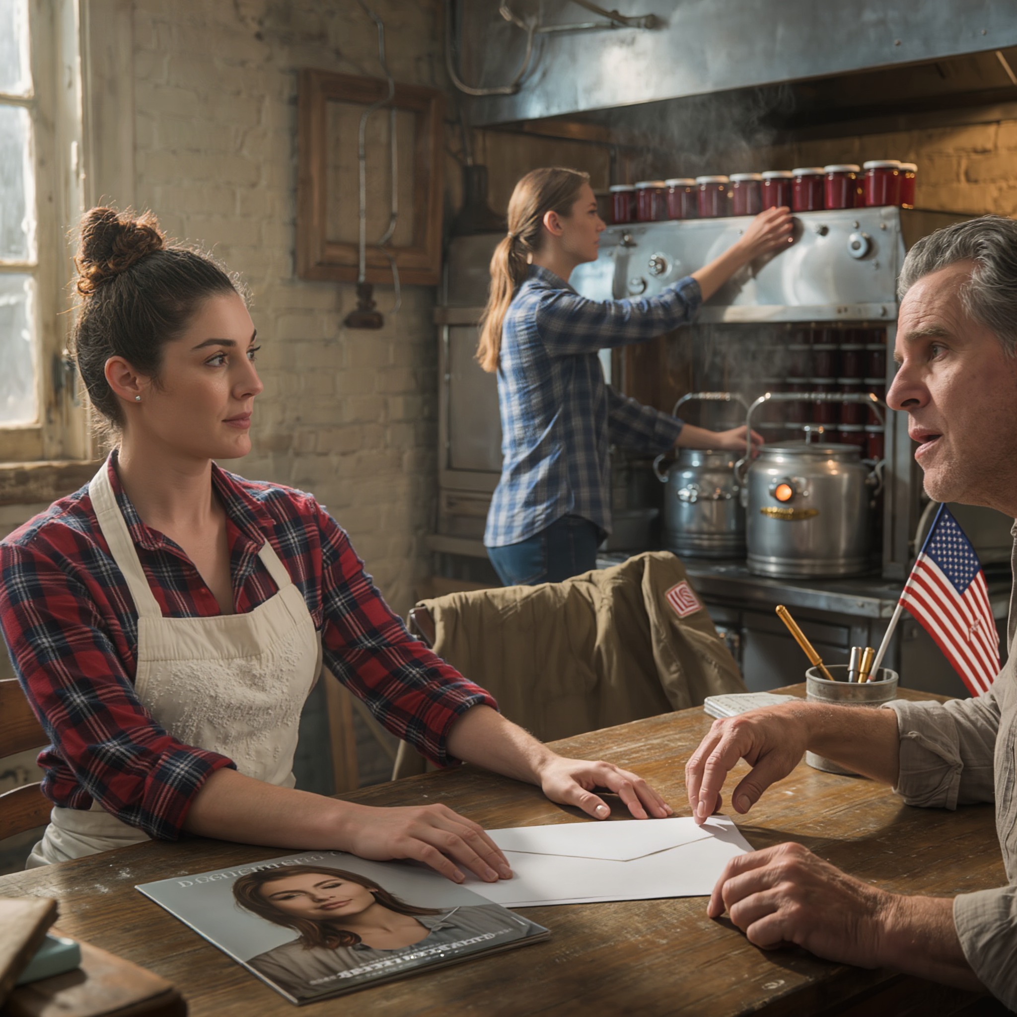 Eran las 7:12 a. m. en Asheville, Carolina del Norte, y la cocina ya olía a fruta hirviendo y vapor. Las paredes de nuestra fábrica familiar de mermeladas estaban cubiertas de etiquetas viejas, como una lección de historia que nadie pidió. Me temblaban ligeramente las manos al colocar el pequeño frasco de vidrio sobre la encimera, con cuidado de que el vapor no empañara su transparencia.